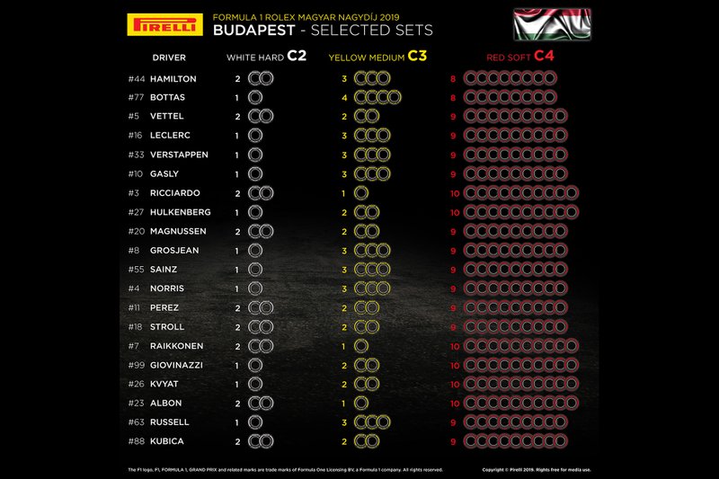 Théâtre de la 12eme manche de la saison de Formule 1, Budapest est un classique de la saison. Souvent appelé : Monaco sans les murs, le circuit est sinueux et étroit. Pirelli a amené, pour l’occasion, le pneu : C2 (Blanc – dur), C3 (Jaune – medium) et C4 (Rouge – tendre).